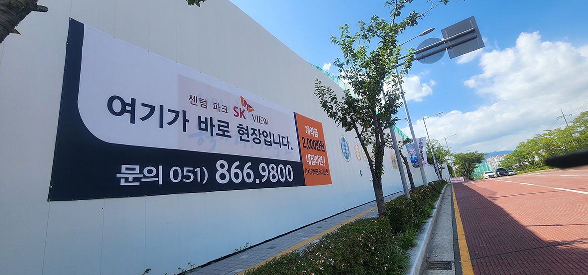 센텀 파크 SK뷰 휀스 현수막 시공