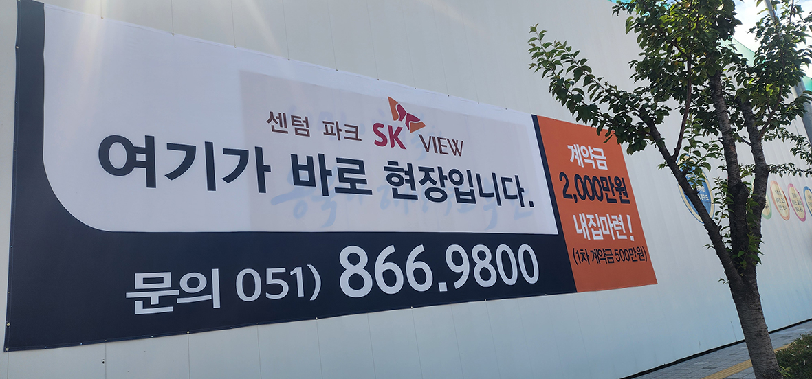 -센텀 파크 SK뷰 휀스 현수막 시공-